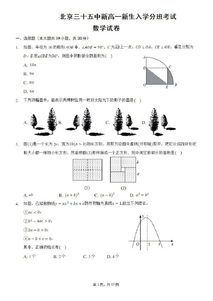 试题汇总:2025北京新高一分班考试题及答案汇总