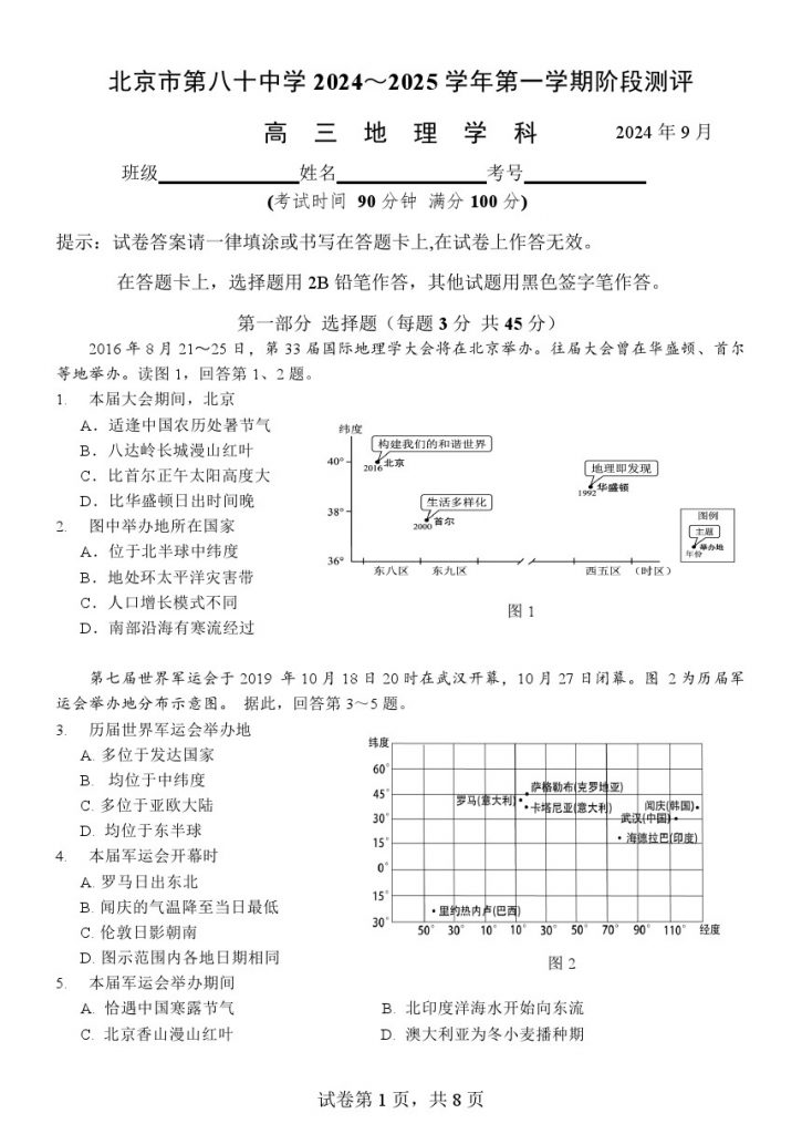 admw360教研组整理了2024北京八十中高三9月月考地理试题及答案,看看都考了哪些内容?