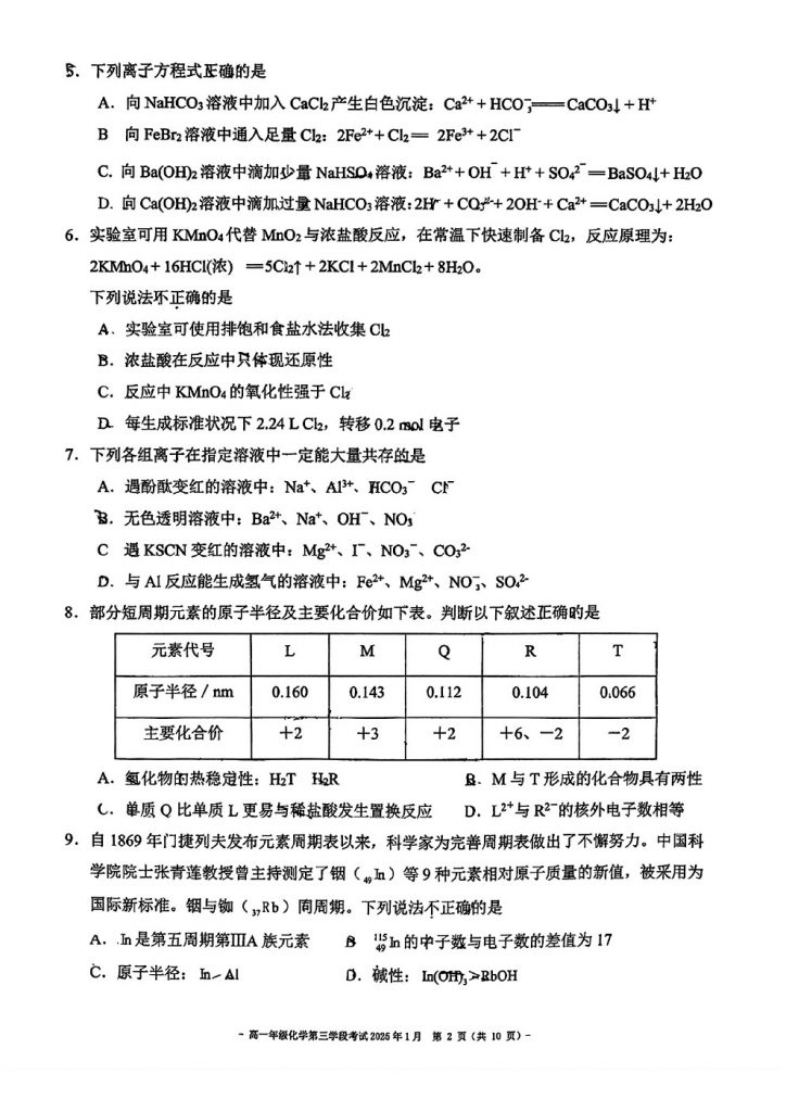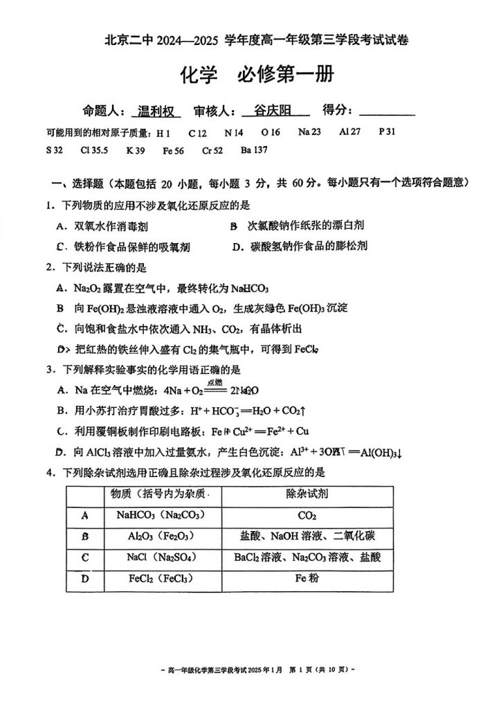 admw360教研组整理了2024北京二中高一(上)学段三段考化学试题,看看都考了哪些内容?