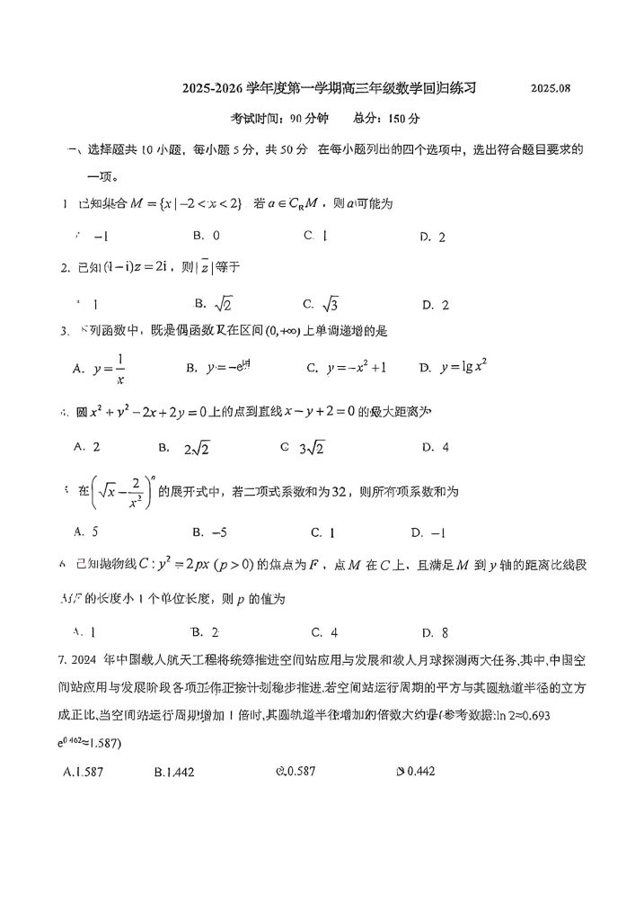 admw360教研组整理了2025北京理工附高三(上)开学考数学试题,看看都考了哪些内容?