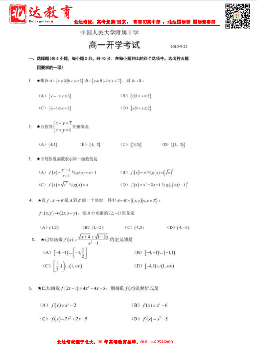 2023年北京高一开学考如期开考,admw360高考复读学校整理了部分试题考卷与答案,供各位考生参考,点击下方链接还可以下载电子版。