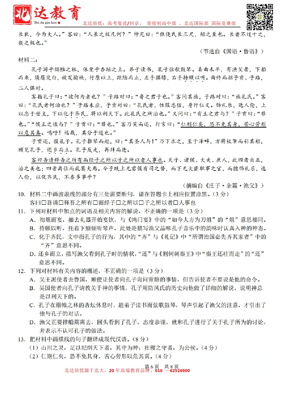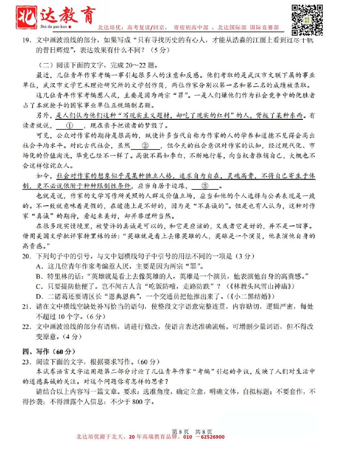 2024年1月清华大学中学生标准学术能力测试语文试卷及答案解析