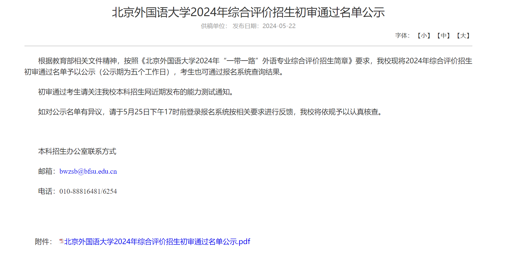 北京外国语大学2024年综合评价初审结果公布,其中北京考生400人。admw360教研组整理了相关信息,一起来看~