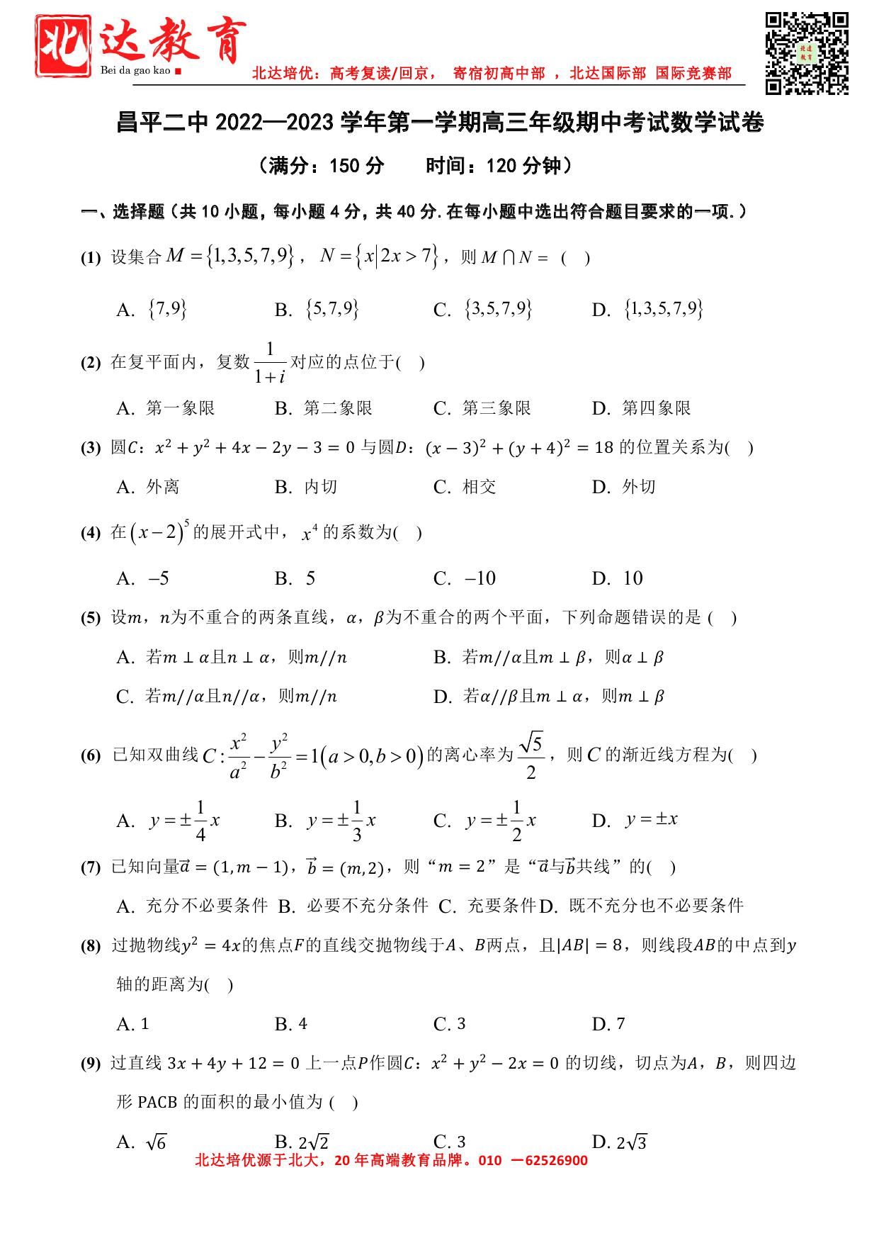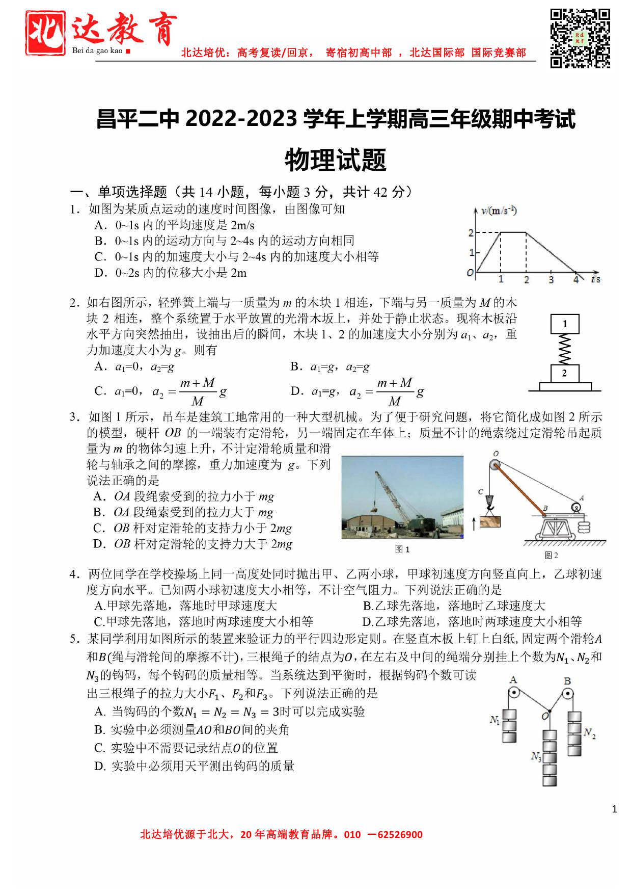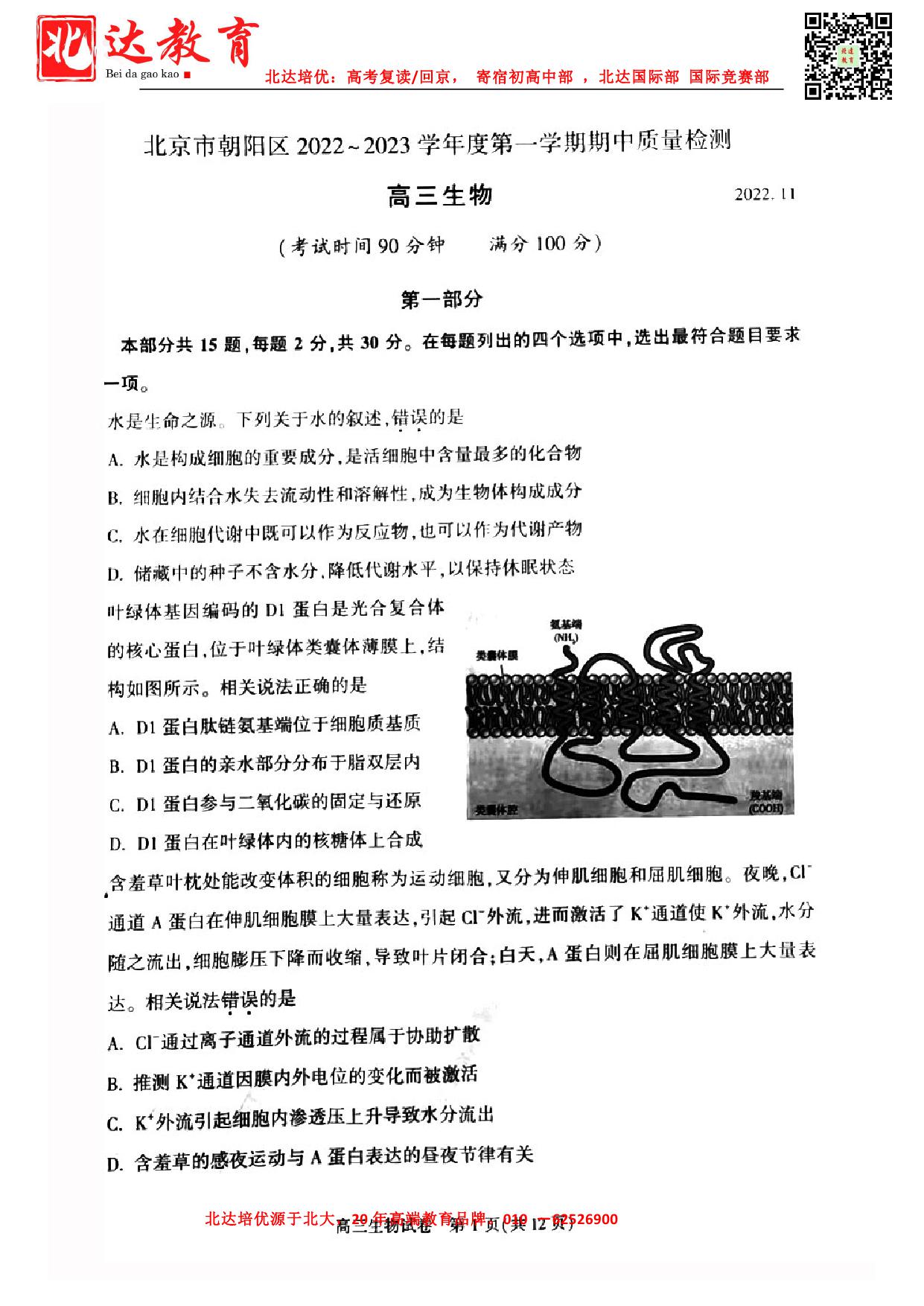 北京市2022-2023学年高三期中试题及答案汇总