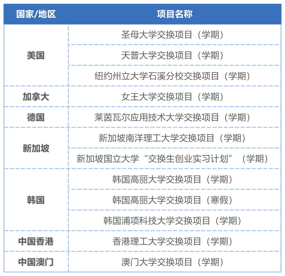 校级交换项目为我校与境外院校签订交换协议的境外学习项目,免除境外学费,学生仅需缴纳我校学费。所有申请交换项目的同学均需提前获得我校交换生申请资格。