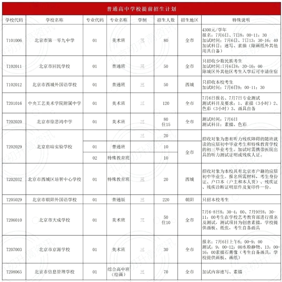 3、北京一零九中学、徐悲鸿中学、工美附中、大成学校、京源学校招收美术生,且5所学校都是面向全市招生,加试内容为速写、素描等。想报考这几所学校美术班的考生,可以多多关注,同时,外区考生也可尝试通过跨区考入这几所学校美术班。