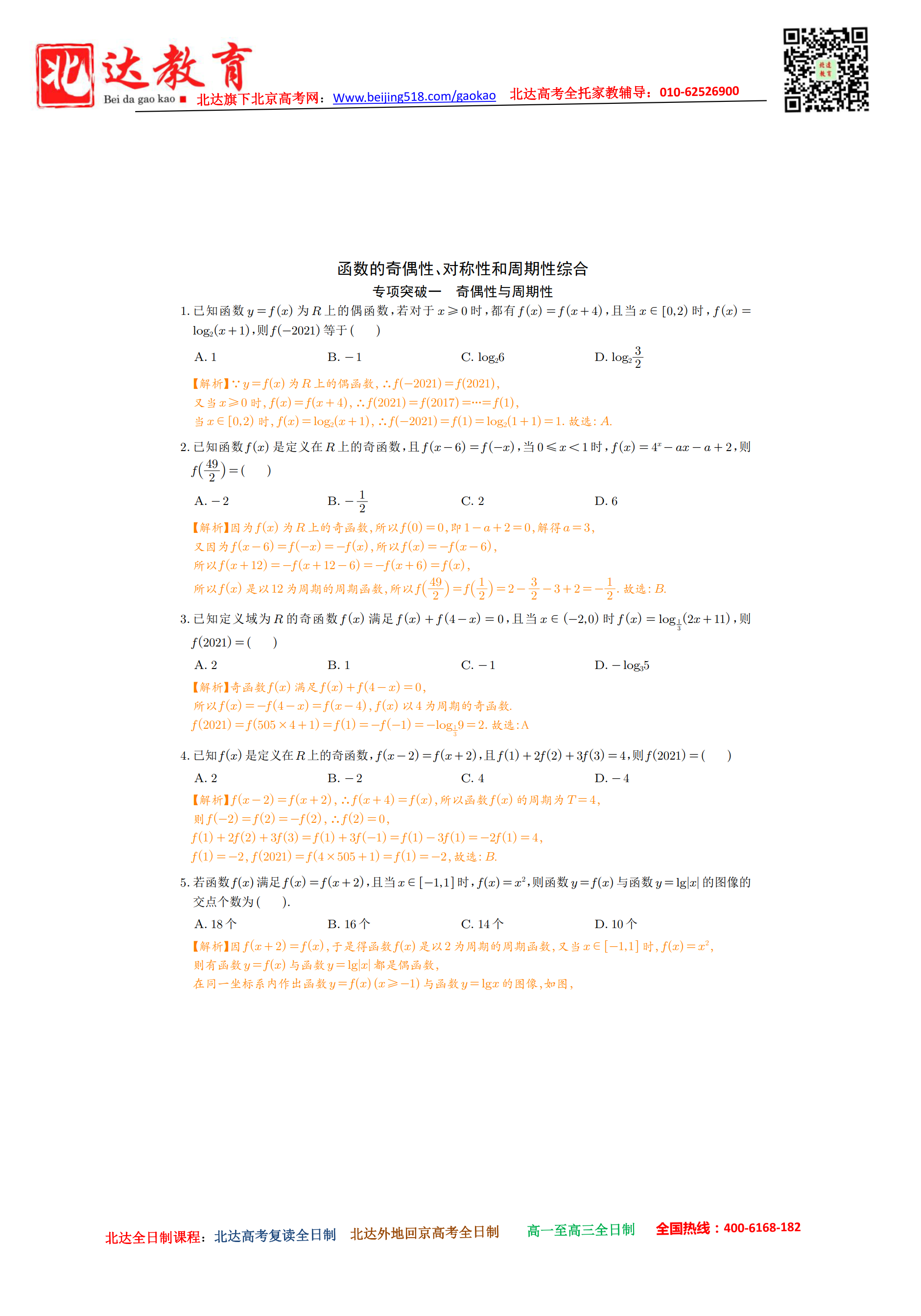 下载文档:北京101中学2020-2021高三上学期数学统考二试题