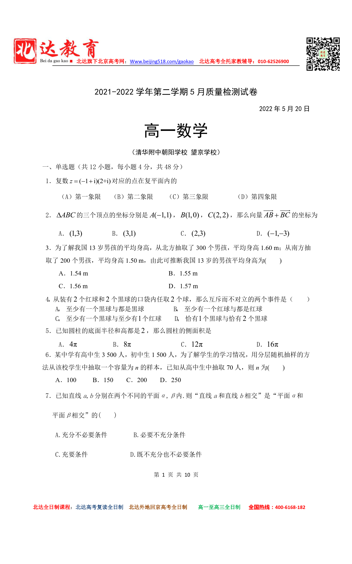 立即下载:北京朝阳区2019-2020学年度高一第二学期期末数学试题