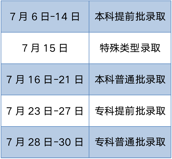 3.高职(专科)批院校录取:7月25日至8月1日。