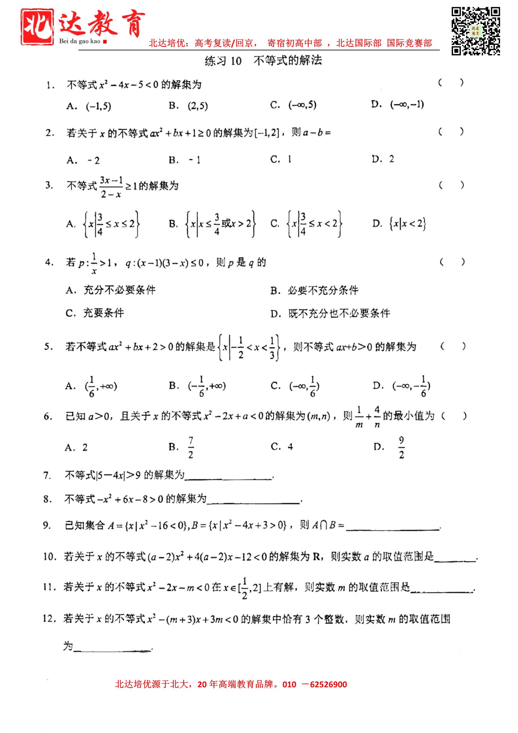 下载地址:2022年北京人大附中高三数学课后练习(基础闯关9不等式的性质)