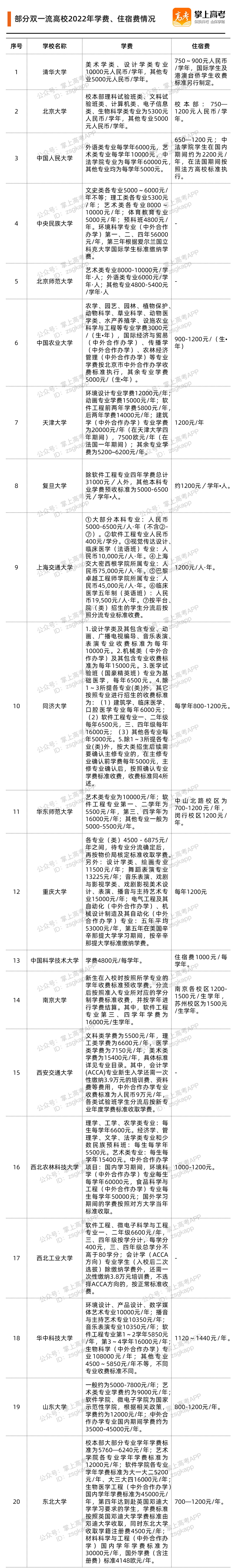 注:本文学费及住宿费是从高校2022年招生章程中摘取,如果高校有最新通知内容,请以最新信息为准。因涉及内容较多,如出现别差,请以高校发布的通知为准。