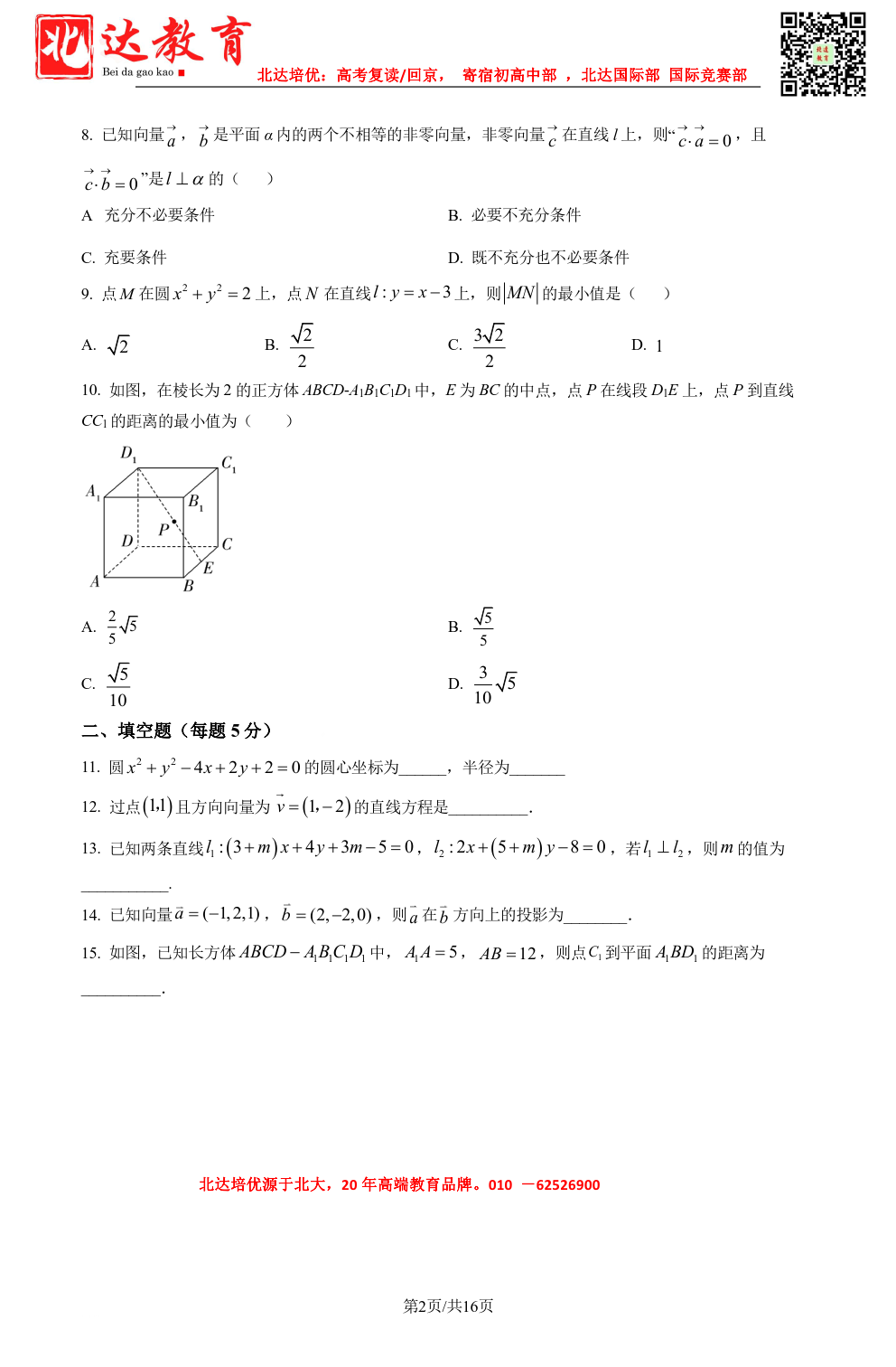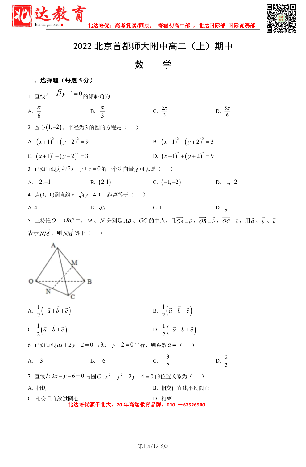 相关链接:北京市2022-2023学年高二第一学期期中试题及答案汇总