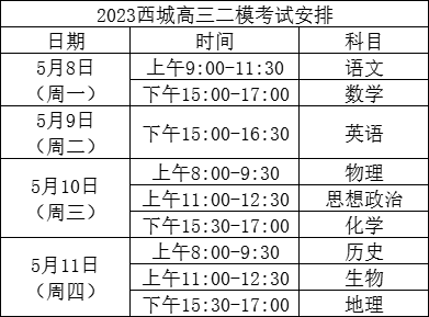 根据朝阳教委统一安排,2023年朝阳区高三年级二模考试时间为5月4日-7日,admw360高考复读学校整理了朝阳高三二模各科考试时间安排,一起来看: