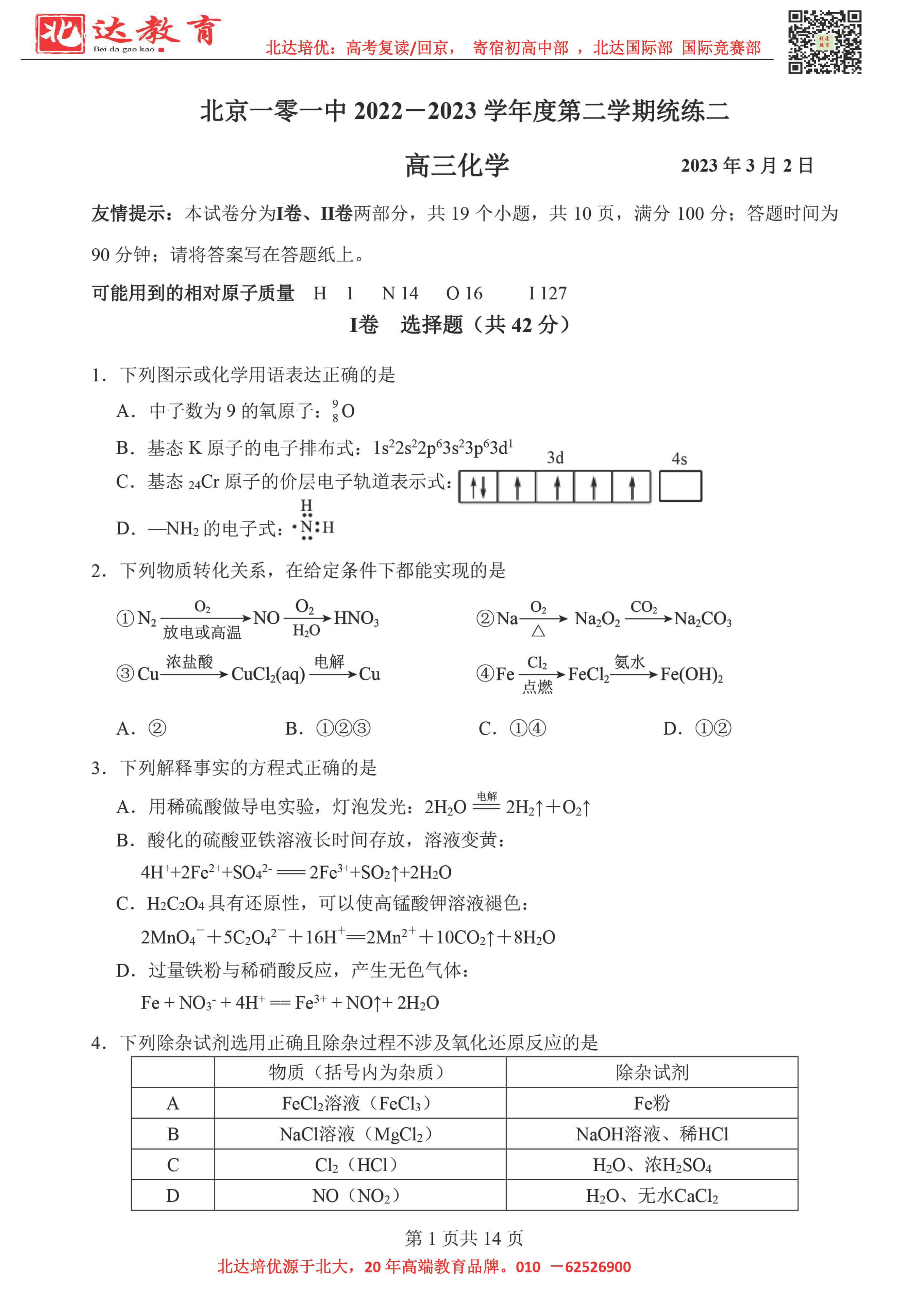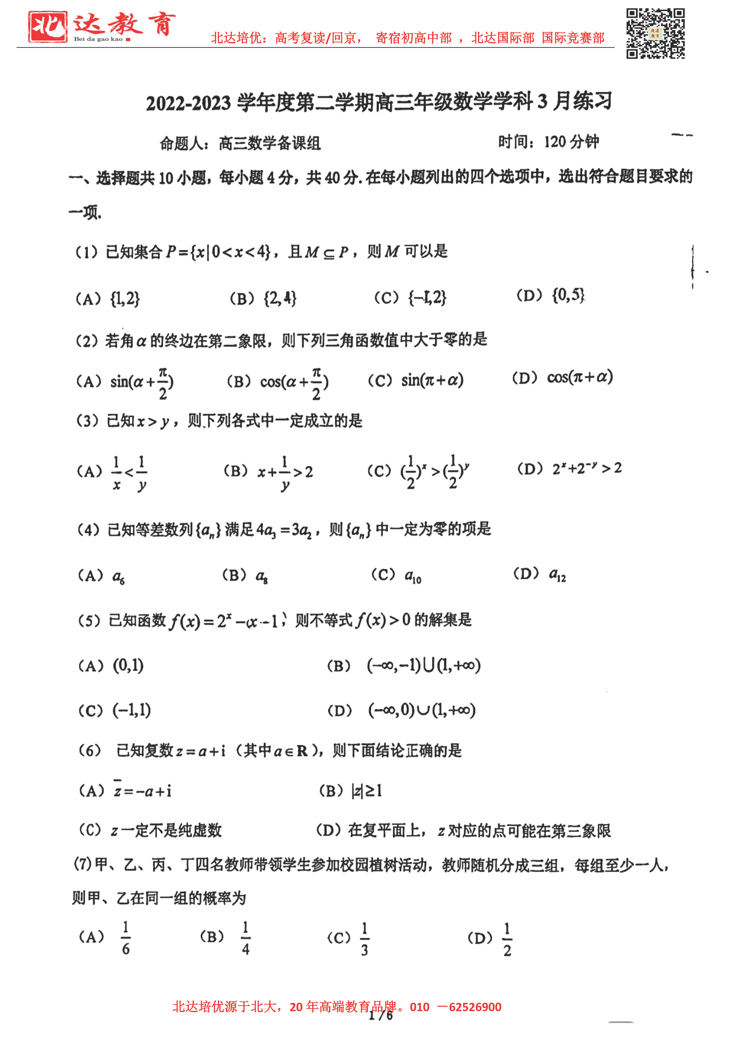 北京2022-2023年第二学期高三年级开学考试题及答案汇总