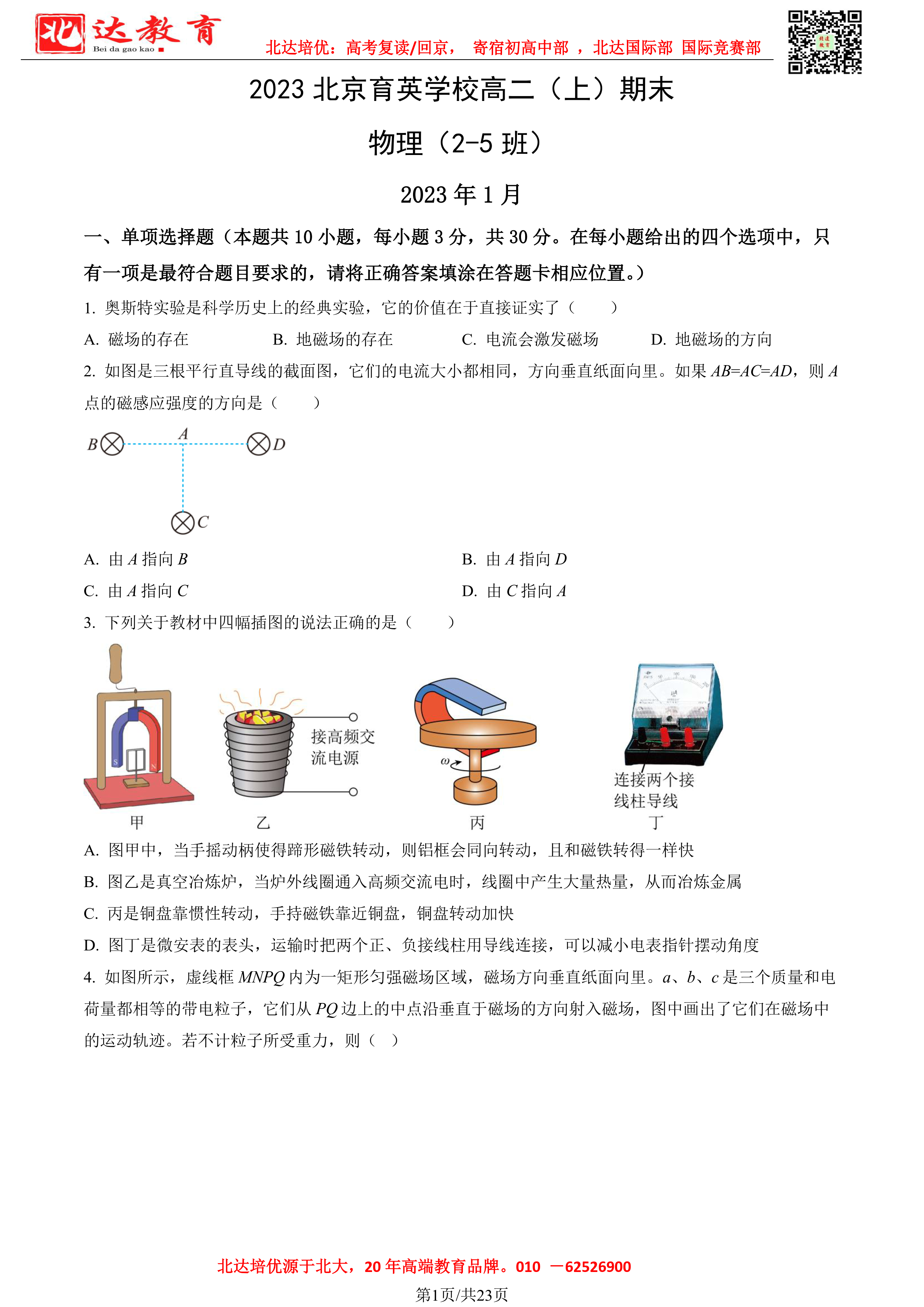 温馨提示:北京各区2022-2023学年高中各年级期末试卷&答案汇总电子版,可加老师微信进群免费获取