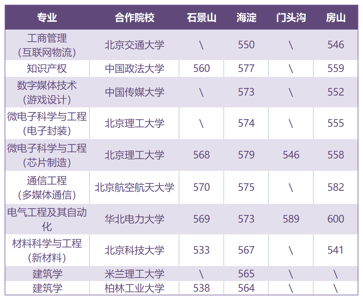 | “北京邮电大学(宏福校区)”国际学院专业组: | ||