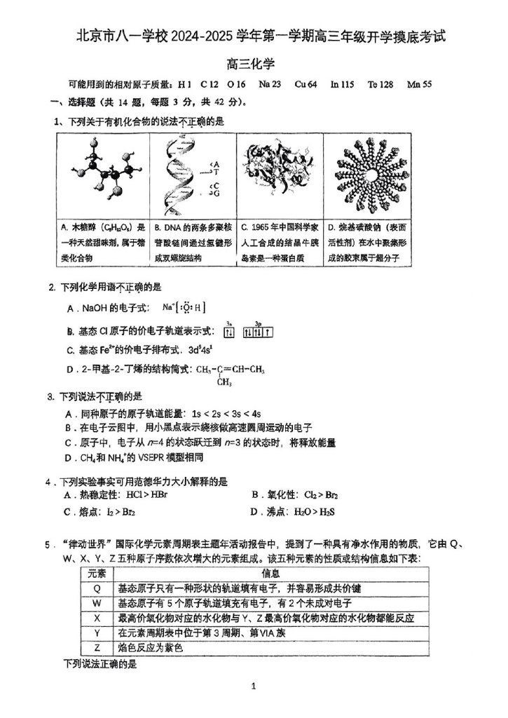 2024北京八一学校高三(上)开学考化学试题及答案 //m.admw360.com/gaokao/74083.html Tue, 19 Aug 2025 09:25:31 +0000 //m.admw360.com/gaokao/?p=74083 admw360教研组整理了2024北京八一学校高三(上)开学考化学试题及答案,看看都考了哪些内容?