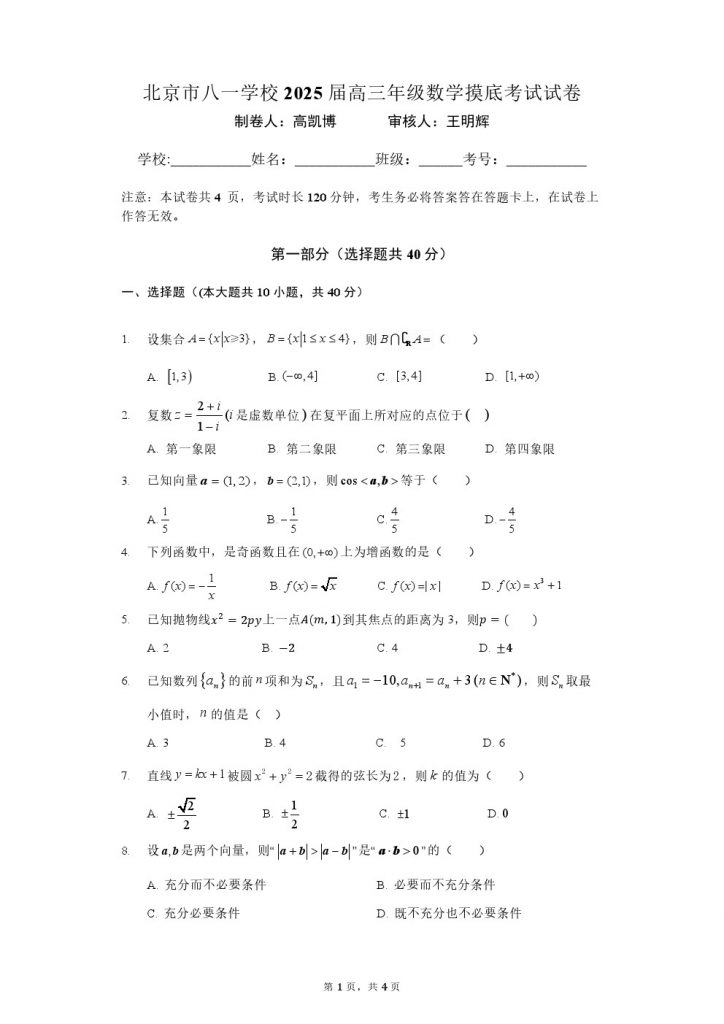 2024北京八一学校高三年(上)开学考数学试题及答案 //m.admw360.com/gaokao/74087.html Tue, 19 Aug 2025 09:40:07 +0000 //m.admw360.com/gaokao/?p=74087 admw360教研组整理了2024北京八一学校高三年(上)开学考数学试题及答案,看看都考了哪些内容?