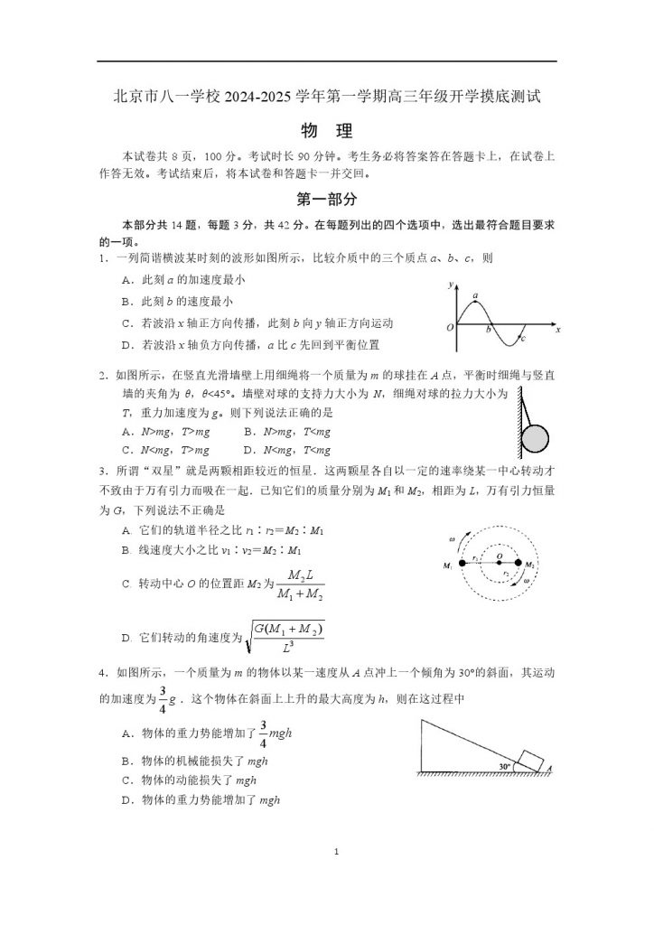 2024北京八一学校高三年(上)开学考物理试题及答案 //m.admw360.com/gaokao/74091.html Tue, 19 Aug 2025 09:52:09 +0000 //m.admw360.com/gaokao/?p=74091 admw360教研组整理了2024北京八一学校高三年(上)开学考物理试题及答案,看看都考了哪些内容?