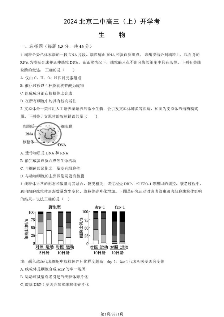 2024北京十五中高三(上)开学考生物试题及答案 //m.admw360.com/gaokao/74112.html Wed, 20 Aug 2025 01:49:50 +0000 //m.admw360.com/gaokao/?p=74112 admw360教研组整理了2024北京市十五中高三(上)开学考生物试题及答案,看看都考了哪些内容?