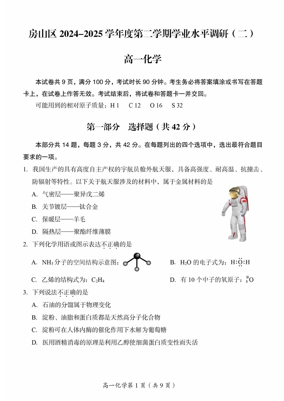 2025北京房山高一(下)期末化学试题及答案 //m.admw360.com/gaokao/73679.html Wed, 06 Aug 2025 01:28:53 +0000 //m.admw360.com/gaokao/?p=73679 2025年北京各区高一(下)期末考已陆续开始进行,admw360教研组整理了2025北京房山高一(下)期末化学试题及答案,分享给大家。