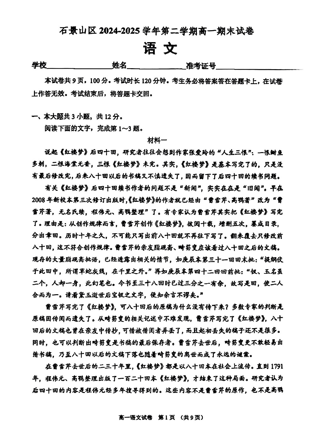2025北京石景山高一(下)期末语文试题及答案 //m.admw360.com/gaokao/73648.html Mon, 04 Aug 2025 08:38:11 +0000 //m.admw360.com/gaokao/?p=73648 2025年北京各区高一(下)期末考已陆续开始进行,admw360教研组整理了2025北京石景山高一(下)期末语文试题及答案,分享给大家。