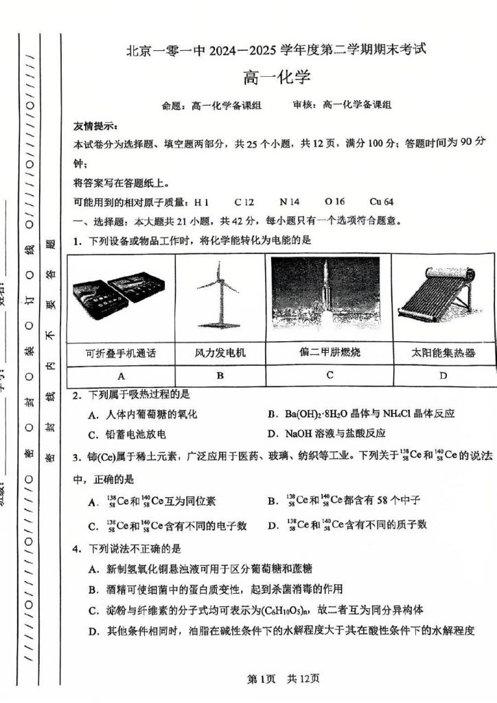 2025北京一零一中高一(下)期末化学试题及答案 //m.admw360.com/gaokao/73652.html Mon, 04 Aug 2025 09:06:51 +0000 //m.admw360.com/gaokao/?p=73652 2025年北京各区高一(下)期末考已陆续开始进行,admw360教研组整理了2025北京一零一中高一(下)期末化学试题及答案,分享给大家。