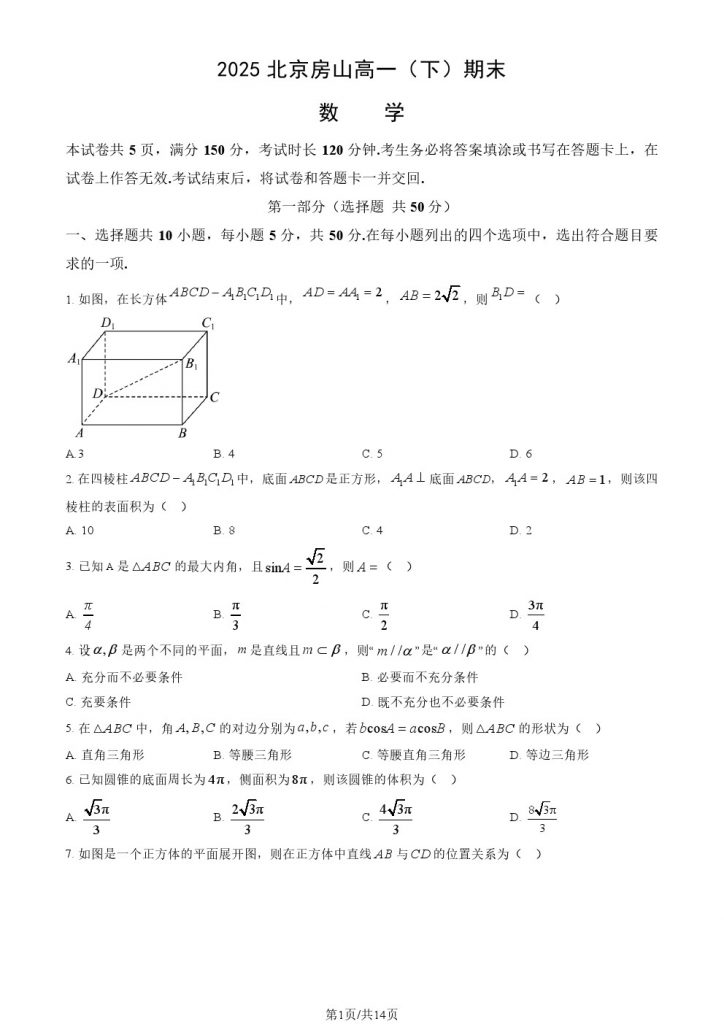 2025北京房山高一(下)期末数学试题及答案 //m.admw360.com/gaokao/73662.html Tue, 05 Aug 2025 01:25:06 +0000 //m.admw360.com/gaokao/?p=73662 2025年北京各区高一(下)期末考已陆续开始进行,admw360教研组整理了2025北京房山高一(下)期末数学试题及答案,分享给大家。