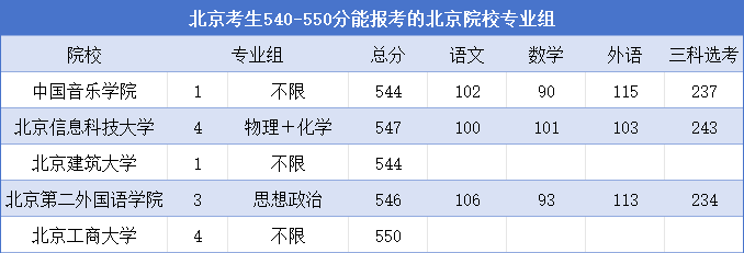 2025北京考生520-540分可报考的院校专业组有哪些?