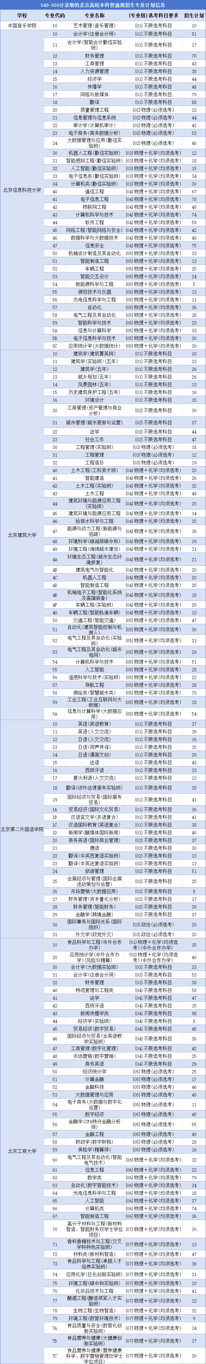 北京考生540-550分可以报考的北京高校有5所,主要包括北京信息科技大学、北京建筑大学、北京第二外国语学院等。具体详见上表。