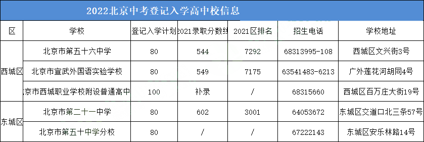 ①西城3所高中参与“登记入学”试点,我们把2021年各校的录取分数线和区排名进行了补充,供大家参考;