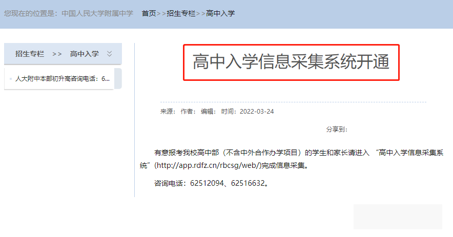 1.2022人大附高中入学信息采集系统