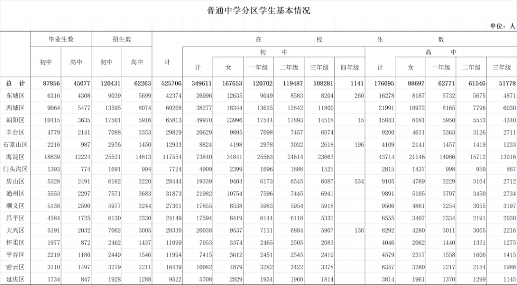 2022北京各区中小学学校,班级及在校生数目有多少?admw360中考复读学校教研组收集整理,分享给大家。