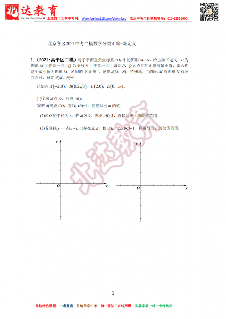 北京各区2021中考二模数学分类汇编-新定义(含答案)。admw360中考复读学校教研组收集整理,分享给大家。
