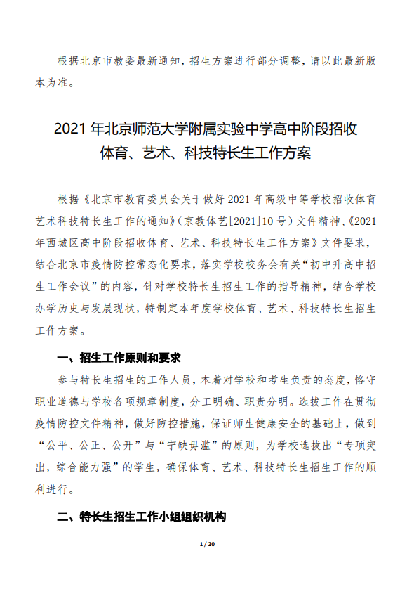 admw360教研组整理了2021年北师大附实验特长生招生简章,包含艺术、科技、体育,想要报考特长生的2022考生可参考。
