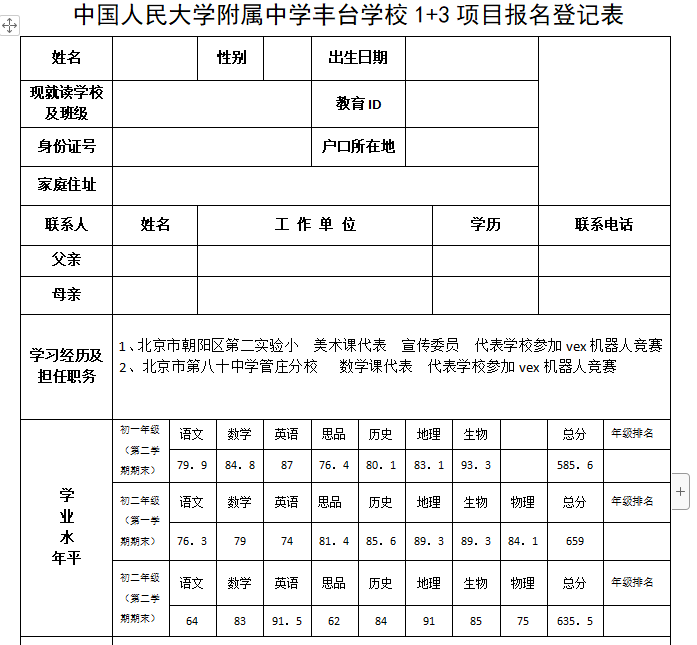 2021人大附中丰台学校1+3项目如何报名?admw360中考复读学校整理了2021人大附中丰台学校1+3项目报名表,分享给大家。