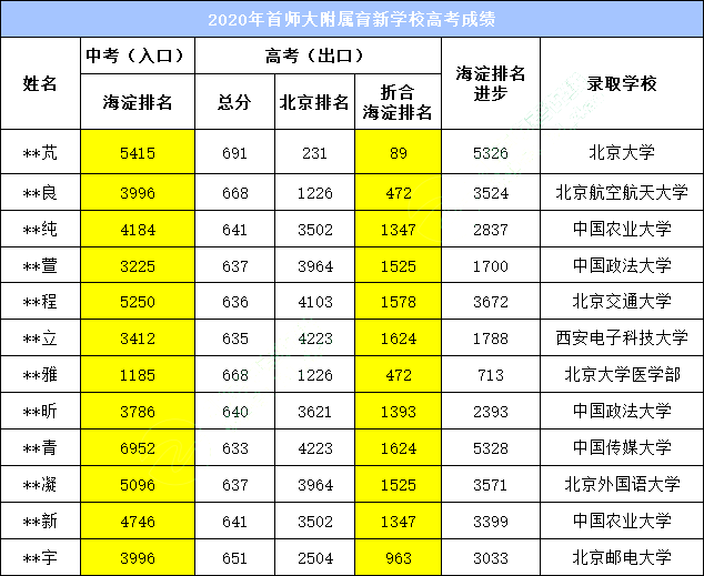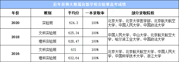 首师附育新实验班高考成绩如下: