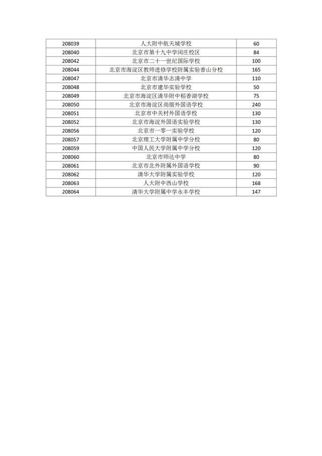 2021海淀区中考统一招生计划