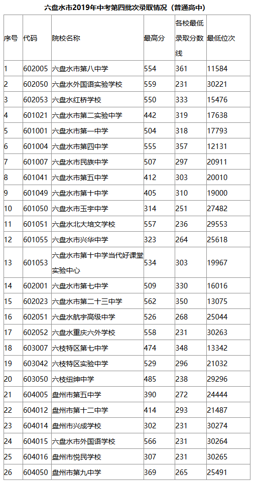 | 12 | 604015 | 六盘水市外国语学校(盘州市) | 475 | 234 |