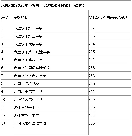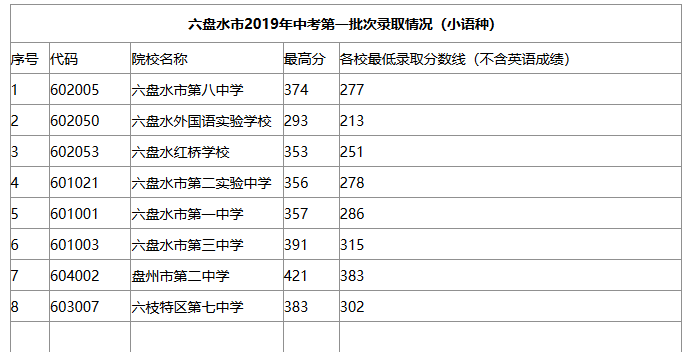 | 六盘水市2018年中考第一批次录取情况(小语种) | ||||