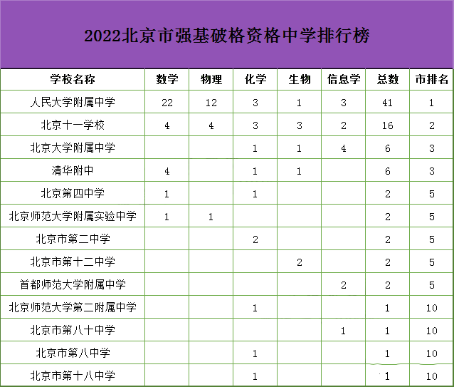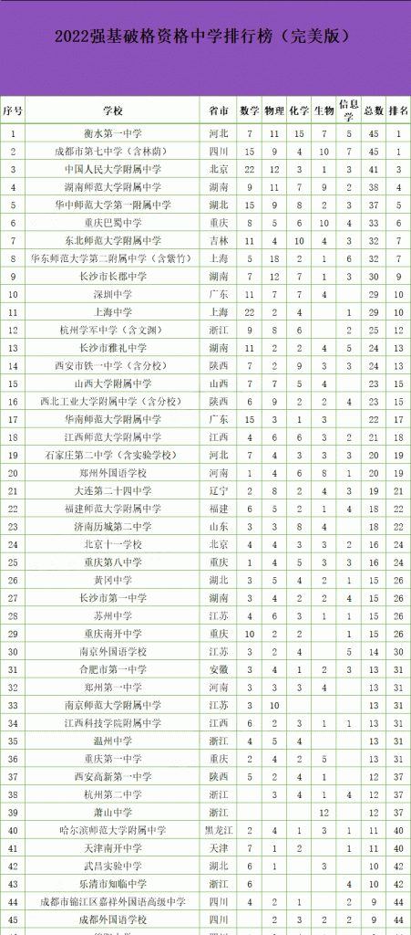 北京市2022强基计划破格资格中学排行榜出炉(附全国榜)!