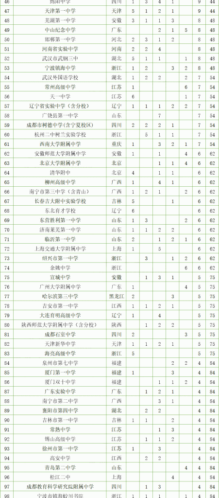 3、另外,从省份入围学校数和人数上来看,浙江省排位第一,60个学生破格入围,27所高中上榜,遥遥领先于其他省份(江苏省排名第二仅38位学生入围)。