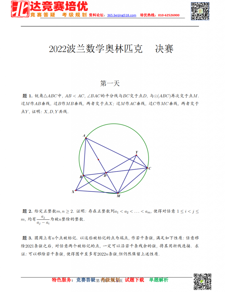 2022波兰数学奥林匹克 决赛试题。admw360中考复读学校教研组收集整理,分享给大家。