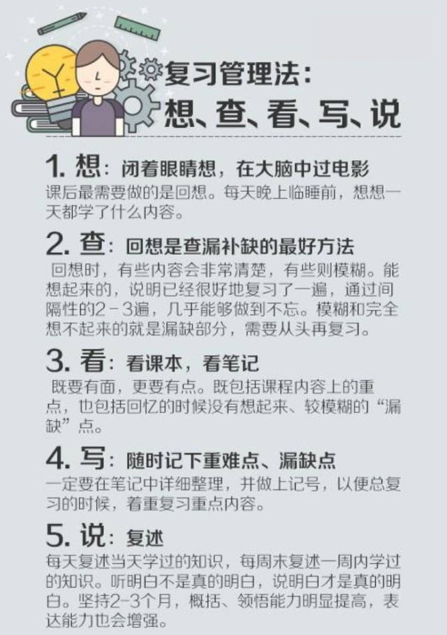想要有好的复习效果,不妨试试这套“想、查、看、写、说”5步复习法。