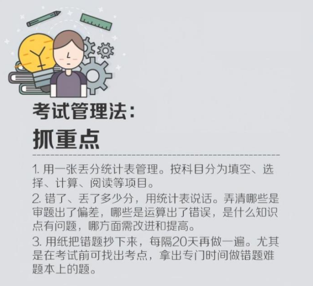 孩子每次测验、考试或者自己做习题时,都可以尝试用下面的方法找出自己的薄弱点,专门抽出时间练习,考试时能少丢不少分呢!