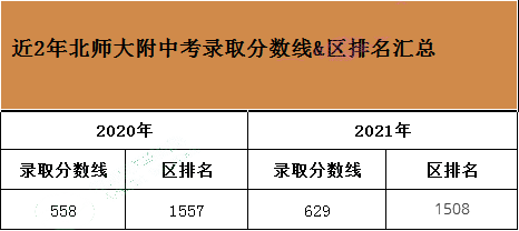 1、2021北京中考改革,中考总分变为660分,所以2021年北师大附中考录取分数线&区排名对2022、2023考生有重要参考意义。