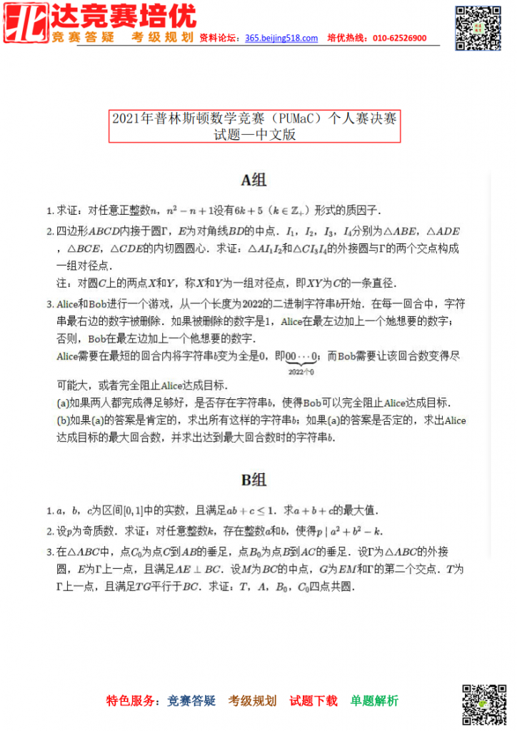 2021年普林斯顿数学竞赛(PUMaC)个人赛决赛试题—中文版。admw360中考复读学校教研组收集整理,分享给大家。 admw360中考复读,外地回京全日制 ★2022中考复读全日制,应届生全日制,…