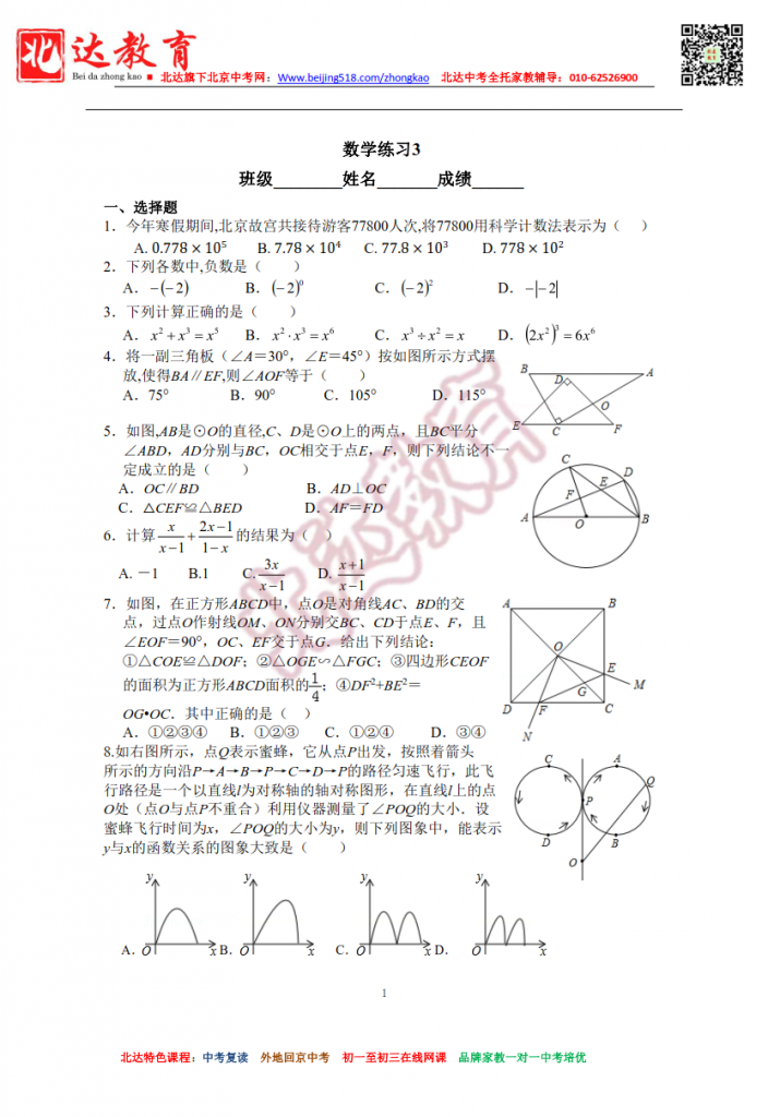 人大附中202204初三数学统一练习3试题及答案。admw360中考复读学校教研组收集整理,分享给大家。