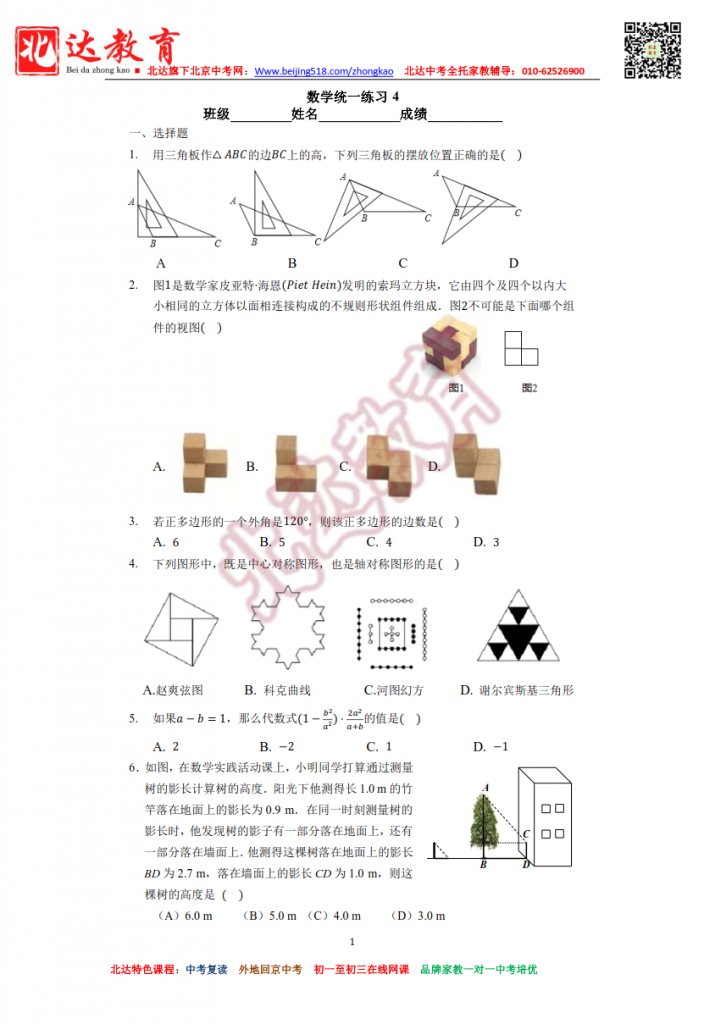 人大附中202204初三数学统一练习4试题及答案。admw360中考复读学校教研组收集整理,分享给大家。