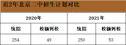 2、2021年统招计划相比2020年减少了4人,这可能是北京二中区排名上升的一个原因。